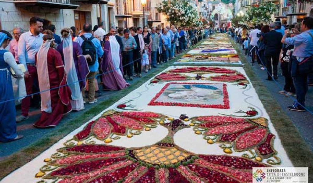 L’Infiorata è una manifestazione artistica e religiosa che celebra la tradizione delle infiorate italiane. Le vie del centro storico diventano tappeti floreali realizzati con petali, semi e materiali naturali.