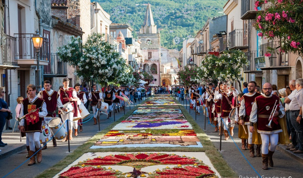 A fine maggio e inizio giugno, Castelbuono (PA) si trasforma in un’opera d’arte a cielo aperto. Le strade si riempiono di colori, profumi e disegni floreali spettacolari. L’Infiorata di Castelbuono è un’esperienza che coinvolge i sensi e il cuore.